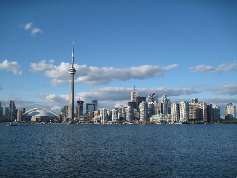 Samstag früh (bei schönstem Wetter) ging die Fahrt weiter nach Toronto. Die Strecke von den Niagara Fällen nach Toronto wäre an sich gar nicht so lang, wenn man nicht den Lake Ontario umfahren müsste. So sieht man die Skyline von Toronto schon Stunden bevor man es wirklich erreicht.