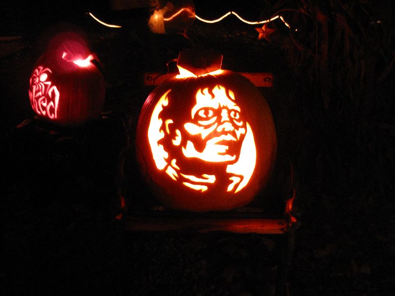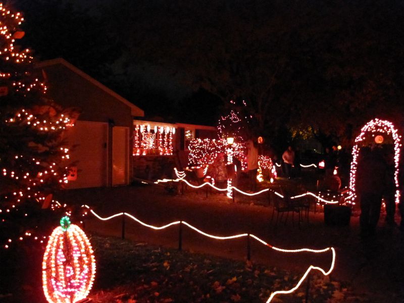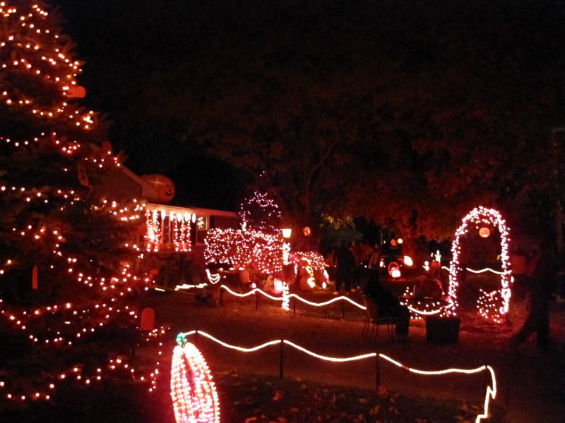 Für viele Leute ist Halloween ein sehr wichtiger Feiertag und sie dekorieren ihre Häuser mehr als wir Deutschen an Weihnachten. Viele Häuser haben Beleuchtung, Skelette und natürlich Kürbisse. Ein Haus in Appleton war wirklich hübsch dekoriert und der Besitzer hatte unzählige ausgeschnittene Kürbisse vor dem Haus bzw. im Garten.