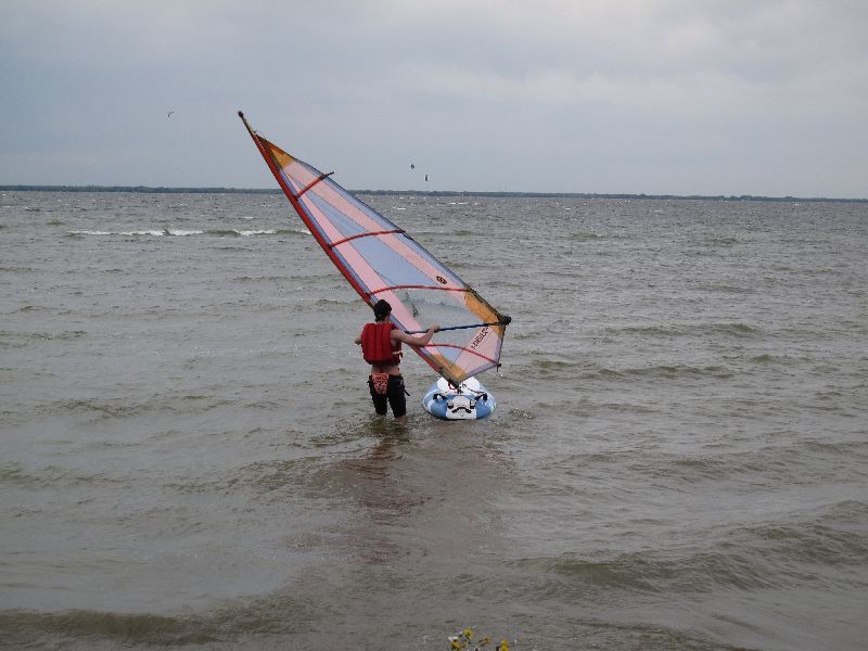 Als ich zu der Surf-Schule gekommen bin, ist gerade eine Crew aufgebrochen, um an eine andere Stelle vom See zu fahren