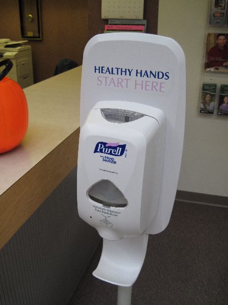 z.B. in Restaurants und Klassenzimmer, kleine Desinfektionstuben herum . Sie sehen aus wie Seifenspender,